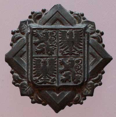Četnictvo - čepicový odznak, Nesign., patinov. zinek 45x45 mm, nepůvodní upínací patky