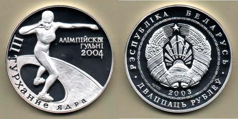 20 Rubl 2003 - LOH Atény 2004 - vrh koulí, KM.149 (pouze 25000 ks), kapsle, nep.skvrnky