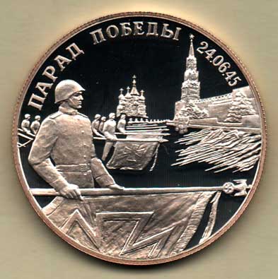 2 Rubl 1995 - přehlídka vítězství - prapory, Y.391 (Ag500, 15.87g, 200.000 ks), kapsle