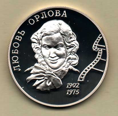 2 Rubl 2002 - herečka Ljubov Orlova, Y.793 (Ag925, 17.00g, pouze 10.000 ks), patina v aversu, kapsle