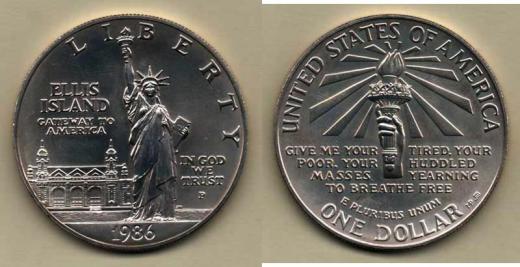 Dolar 1986 P (Ag) - 100 let sochy Svobody, KM.214, 26.628g, patina