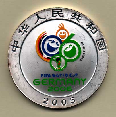 10 Yuan 2005 - MS ve fotbale 2006, Y.1618 (50.000 ks), kapsle, nep.rysky, barevný potisk nep.setřený