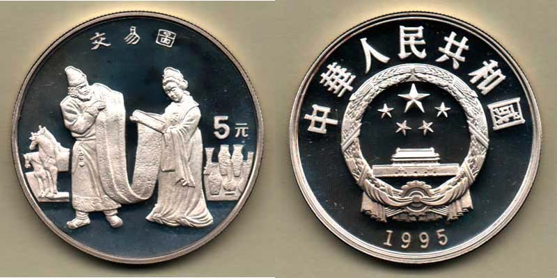 5 Yuan 1995 - obchodník a zákaznice, Y.602 (pouze 15.000 ks), kapsle