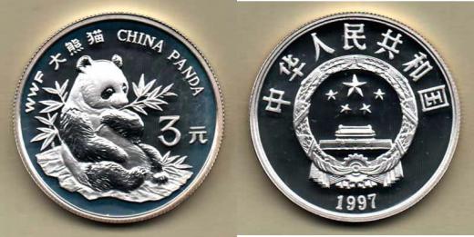 3 Yuan 1997 - panda, Y.1081 (pouze 50.000 ks), kapsle
