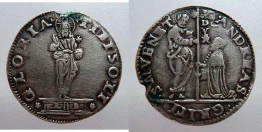 Lira (Mocenigo), zn.AB, Antonio Bembo 1527 - 1528 nebo Alvise Barbaro 1528 - 1529, Meyer.276, 6.363g, vylomené ouško, vlas.rysky, patina