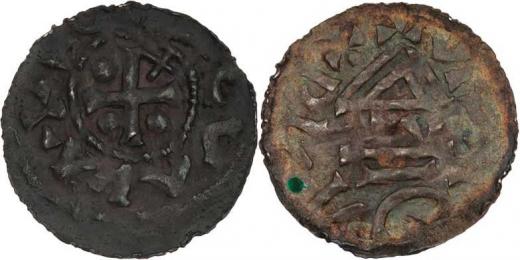 Denár, Ca.34, podobný jako F.131 (není vyobrazen), Katz.34, 1.000g, nep.nedor., pěkná tmavá patina, nep.exc., Chaurova značka, starý podložní lístek