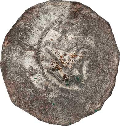 Denár, Ca.623, F.XVIII/13 (1718), 0.695g, opisy téměř nevyraženy, exc., nedor., patina R!