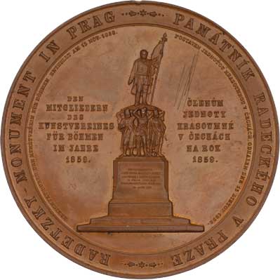 Seidan - AE medaile Jednoty krasoumné v Čechách 1859 - hlava zleva, opisy/ pomník maršála v Praze, nápisy a opisy, Sign., 80mm, Don.3698, dr.hr., lakovaná