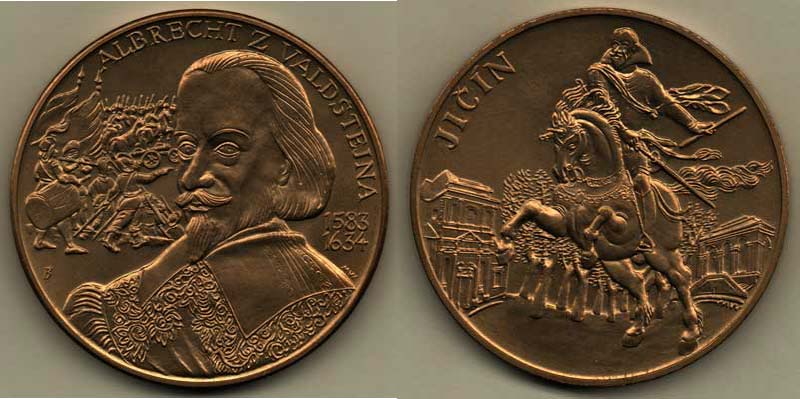 Vichnerová - mosazná medaile b.l. (cca 2010) - poprsí zleva, vojsko, opis / Valdštejn na koni, dva paláce, nápis, 50mm, 57.823g, pěkná patina, zmenšená karta