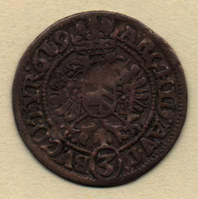 3 Krejcar (1)619, Vídeň-Jessinski, M-A.106, 1.171g, nedor., pěkná patina R!