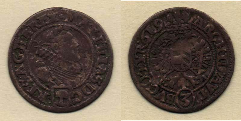 3 Krejcar (1)619, Vídeň-Jessinski, M-A.106, 1.171g, nedor., pěkná patina R!