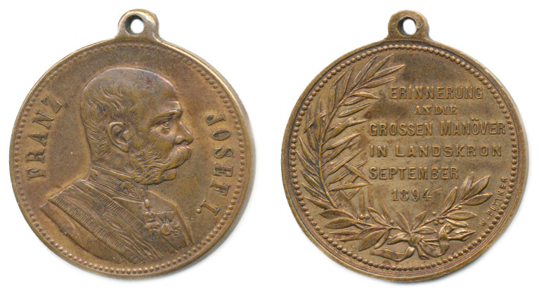 Lanškroun (Landskron) - manévry v září 1894 Poprsí císaře zprava, opis / 6řádk.nápis ve vavřínovém věnci Sign.W.PITTNER, Bronz 29 mm_orig.raž.ouško tém.