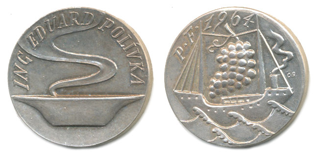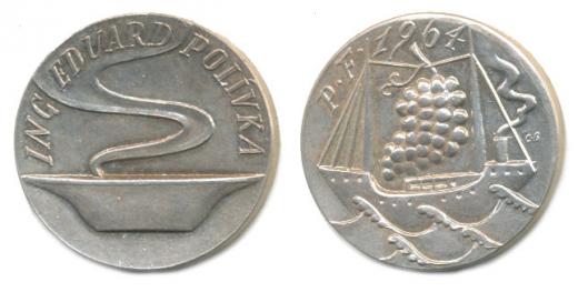 Ing.Eduard Polívka - P.F.1964 Loď s hroznem vína, opis / kouřící talíř, opis Sign.C.B. (C.Bouda), ryl K.Špánek, Ag (nepunc.) 24,5 mm, 8,9 g