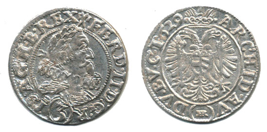 3 Krejcar 1629, Vratislav-Riedel, MKČ.1018, Her.1286_tém.