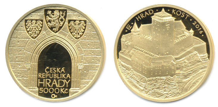 5000 Koruna 2016 - hrad Kost náklad pouze 8.200 ks_orig.etue + kapsle + certifikát