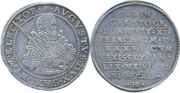 Tolar úmrtní 1586 HB, Drážďany-Biener, na rev.9 řádk.nápis, Dav.9804, Reim.4704_č.ned. R!