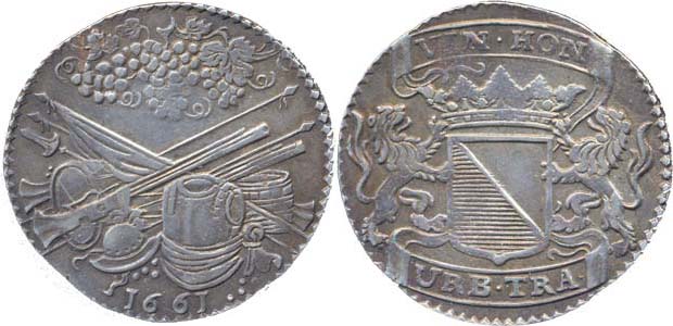 1/4 Tolar střelecký 1661, korunov.znak držený lvy / střelecké atributy s vinnými hrozny, Ag 29 mm, 6.9 g, Erb.15631_R!
