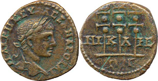AE 20 mm, portrét zprava / tři standarty a nápis, SGI.3287