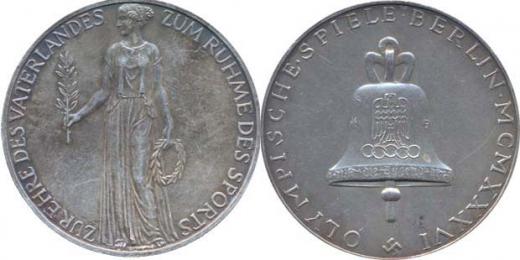 K.Roth - Berlin - olympijské hry 1936 Zvon, opis se svastikou / bohyně vítězství, opis Punc.999, Ag 37 mm, 21.71g_R!