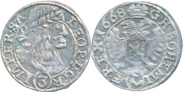 3 Krejcar 1668, K.Hora-Hackl, Nech.285, MKČ.1452, Ja.9