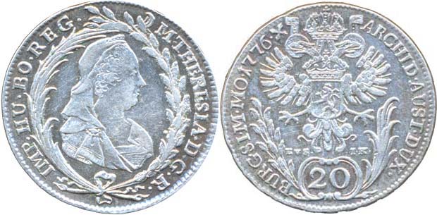 20 Krejcar 1776 EvS - IK, Praha, N.55_tém.
