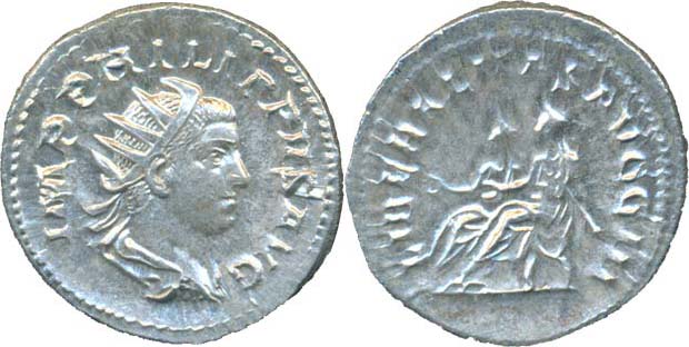 AR Antoninianus "LIBERALITAS AVGG.III.", sedící císař a jeho otec S.2564, C.17, RIC.230_R! tém.
