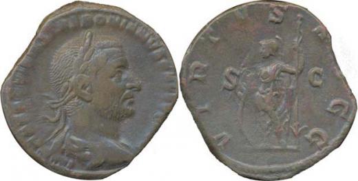 AE Sestercius, Rv:"VIRTVS AVGG - S.C.", stojící Virtus zleva S.0,RIC.126a_R!