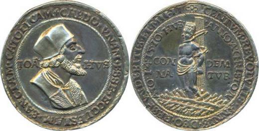 Husův 1/2 tolar, b.l. - litý ( ze 16.stol.) Poprsí zprava, nápis a opis / Hus na hranici, nápis a dvojitý opis, Ag 41 mm, 14.51 g, Don.3453, Katz.71 _pozlac.portrét a relief, dr.st. po o. R!