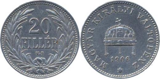 20 Fillér 1906 KB_dr.rys. RR! tém.