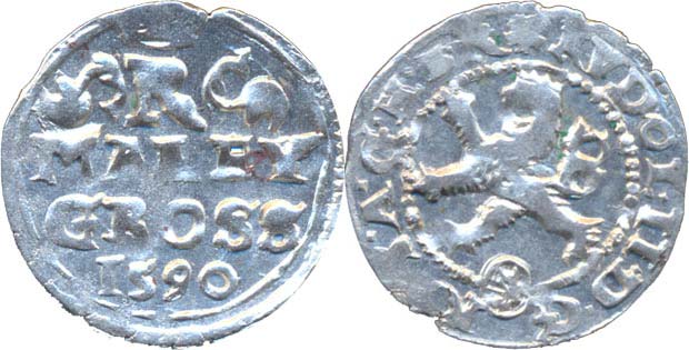 Malý groš 1590, Č.Budějovice-Mattighoffer, HN.25a(opis 7a), J.11a _dr.ned.