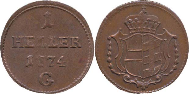 Cu Haléř 1774 G, Günzburg, N.149, Nov.23_tém.