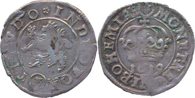 3 Krejcar 1619, K.Hora-Hölzl, J.3a1, MKČ.581 var. s tečkami v opisu_R!