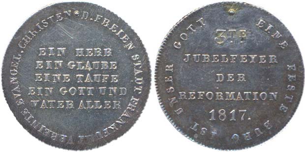 Německo - Frankfurt - na 3.sekulární slavnost 1817 5řádk.něm.nápis, opis / 5řádk.nápis, opis, Schnell.286, Zak.155 Ag 22 mm, 2.20 g