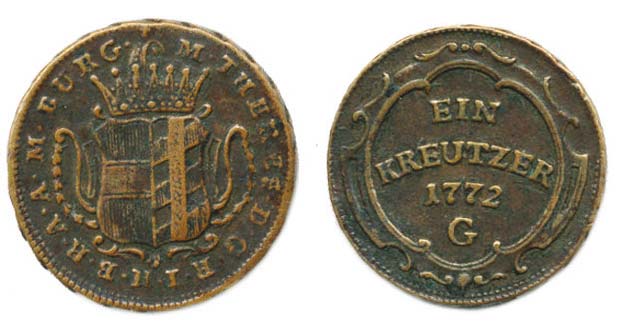 Cu Krejcar 1772 G, Günzburg, N.146 (chybné vyobrazení!) Her.1601, Eyp.399_R!