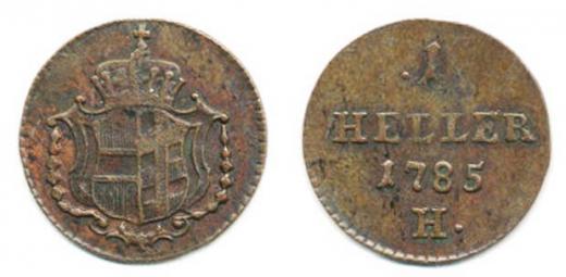 Cu Haléř 1785 H, Günzburg (pro Přední Rakousko) P.55, J.32, He.456, AM.30_R!
