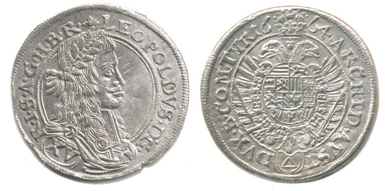 XV Krejcar 1664, Neuburg a.Inn-Triangel, Nech.2033, Höll.64.1.9 _dr.hr. R!