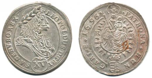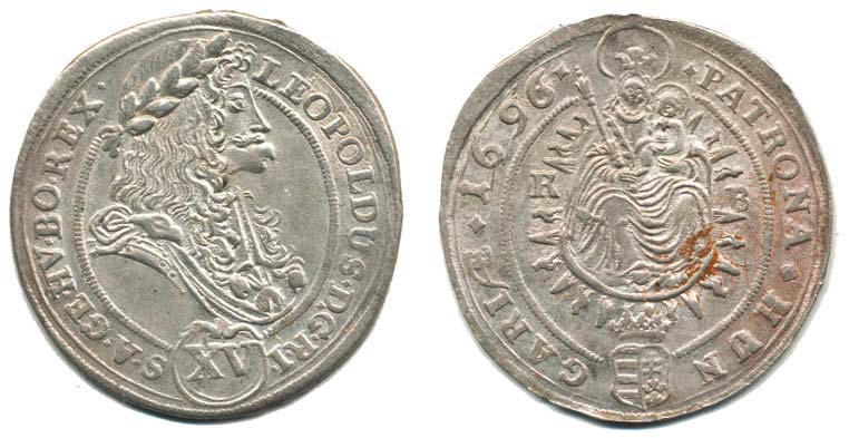 XV Krejcar 1696 KB, Nech.1184, Höl.96.1.3_tém.
