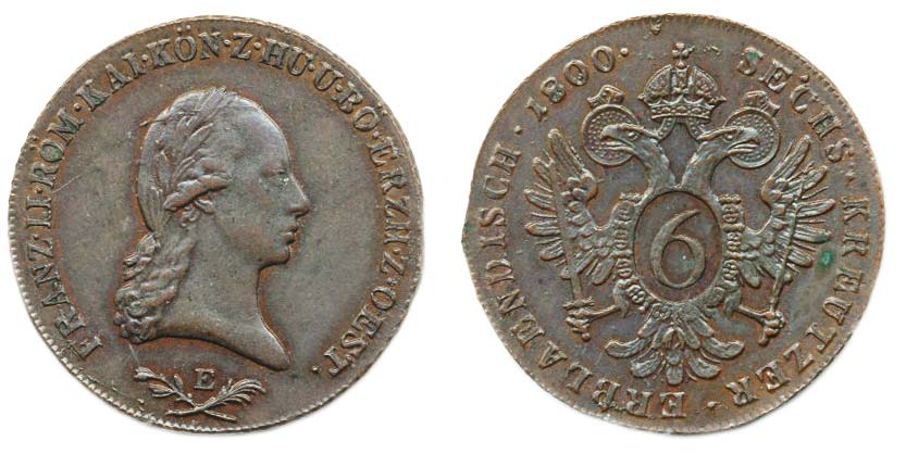 Cu 6 Krejcar 1800 E, minc.Karlovský Bělehrad