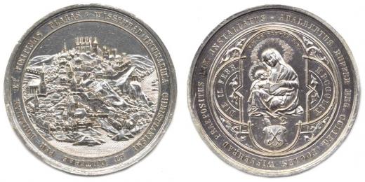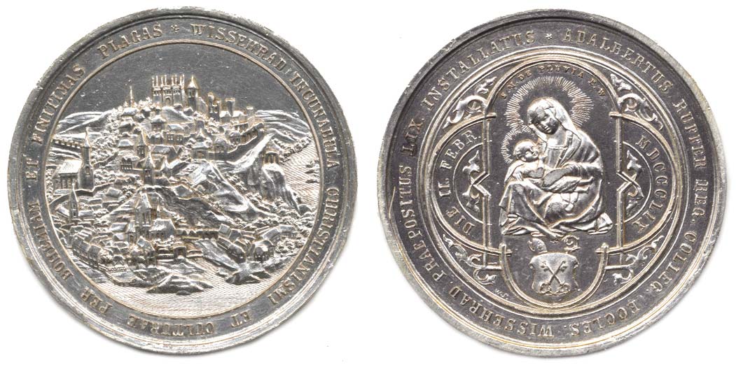 Nesign. - stříbrná instalační medaile 2.II.1859 Pohled na Vyšehrad, opis / Madona, znak kapituly, opisy Sign., Ag 42 mm, 24.47 g,, Přib.697, Gr.184_RR! tém.