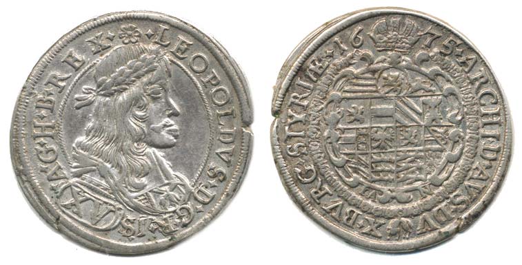 XV Krejcar 1675, Št.Hradec-Nowak, Nech.2153, Höll.75.2.1, Her.944 _kraj.stř. R! tém.