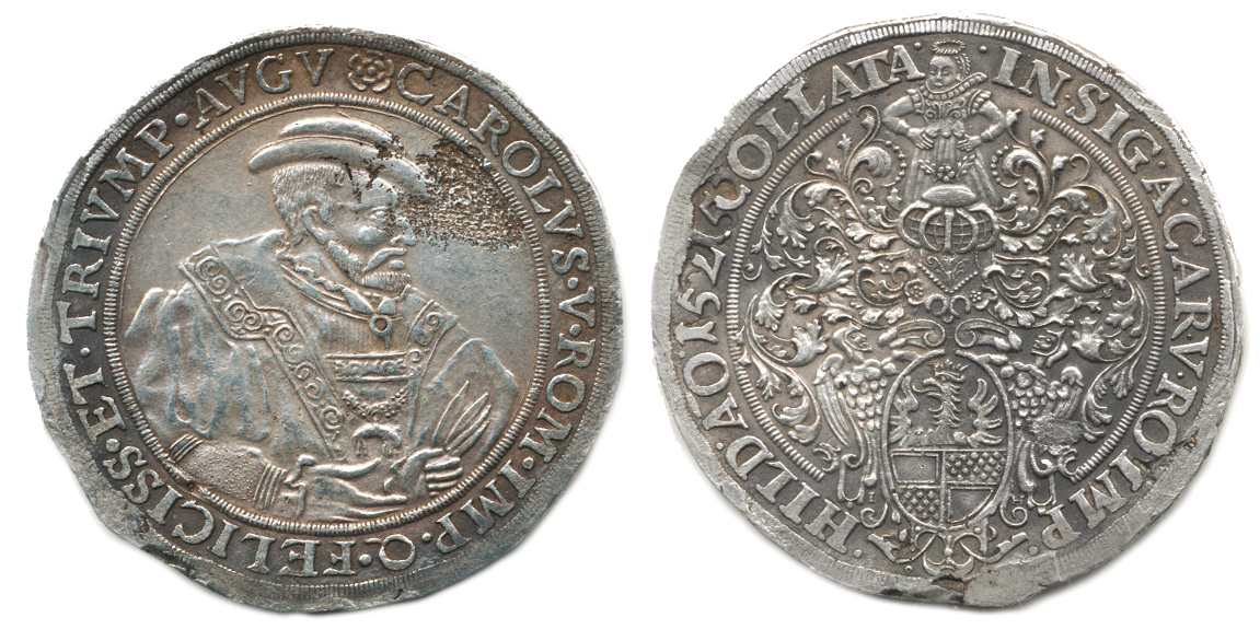 Tolar 152(8), portrét zprava, opis / honosný znak, opis Schulten.1270, tab.29 (znač.jako Goldgulden), 30,35 g _oprav.hrana, dr.v.stř. v av. RR!