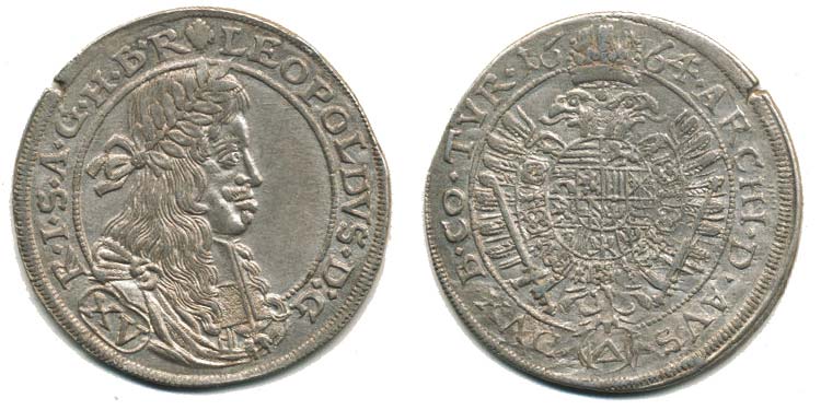 XV Krejcar 1664, Neuburg a.Inn-Triangel, Nech.2033, Höll.64.1.17 _dr.okr.
