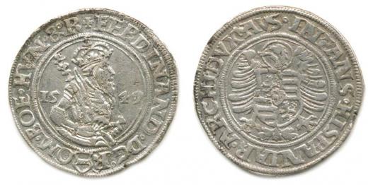 1/2 Tolar 1549, Jáchymov-Puellacher, J.35, MKČ.127, Do.1179 var. v opisu av.: místo "REX" je "R", v rev.: ARCHIDVX.AVS.