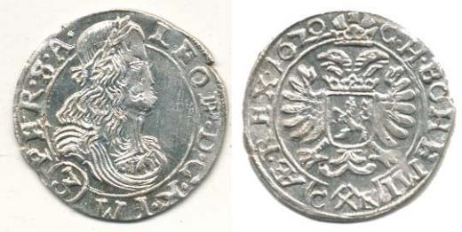 3 Krejcar 1670, K.Hora-Hackl, Nech.287, MKČ.1486 var.větší portrét_č.ned. v av. R!