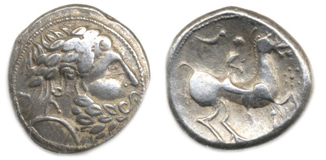 AR Tetradrachma - typ Audoleon / Vogelreiter, Vousatá hlava zprava / jezdec na koni zprava s letícím ptákem 24 mm, 14,06 g, Kost.673, Gögl.336/2, Ca.1333_R!
