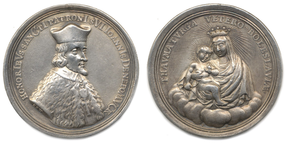 P.P.Werner - na blahoslavení Jan Nepomuckého 1721#Ag Portrét čelně mírně zprava, opis / madona staroboleslavská, opis Sign., Ag 44 mm, 29,02 g, MZČ.75/3, Don.4089, Gr.1162_R!