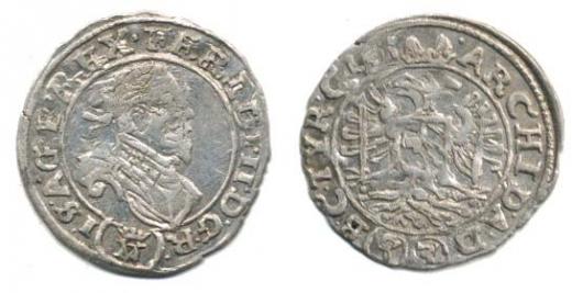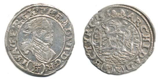3 Krejcar 1636, Vídeň-Vestenburg, Her.1056 _výrazný dvojráz v rev. - 2x vyražena hodnota R!