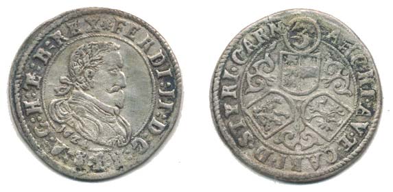3 Krejcar 1624 b.zn. pro Krajinu (ve Slovinsku), minc.Svatý Vít Her.1137, Moz.IV/77_RR!
