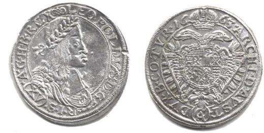 XV Krejcar 1663, Vídeň-Cetto, Nech.1907, Höll.63.4.2_dr.hr. tém.