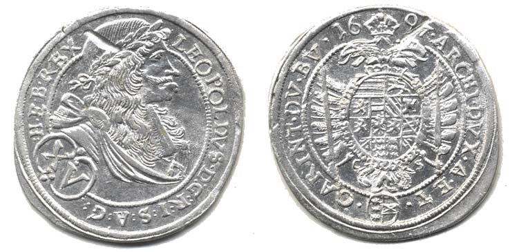 XV Krejcar 1697, Svatý Vít-Strauss, Nech.2532, Höl.97.2.1, Her.973 _dr.škr. v av. a rev. R!